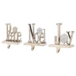 Northlight LED Lighted “NOEL” Christmas Stocking Holder – 6.5″ – Gold And Silver – Set Of 4