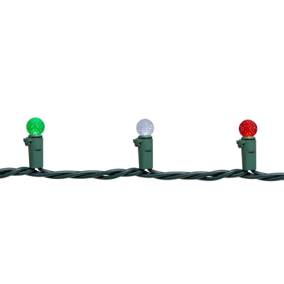 From the holidays to holiday parties or a casual night with friends this season, string lights add a joyful touch to any ensemble. Turn any space into a glimmering paradise with this must-have string of lights! These LED lights are sure to be an exciting addition to your holiday decor.Product Features:Color: green/red/ pure white bulbs / green wireNumber of bulbs on string: 50Bulb size: G12Spacing between each bulb: 4”Lighted length: 15.9Total length: 16.65” lead cord4” tail cordAdditional Product Features:Commercial grade lightsLED lights use 90% less energy Durable non-glass replaceable bulbsCool to the touch UL certified and approved for indoor or outdoor use If one bulb burns out, the rest will stay litLights are equipped with Lamp Lock feature, which makes them replaceable, interchangeable and keeps them from falling outComes with replacement bulbs and spare fusesContains end-to-end connectors which allows you to connect multiple sets together (not to exceed 210 watts)Wire gauge: 22120 volts, 60 hertz, .0 amps, 2.4 watts