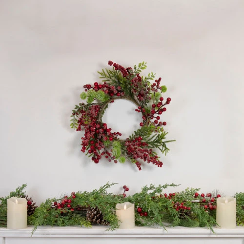 Accented with frosted ice and shiny red berries