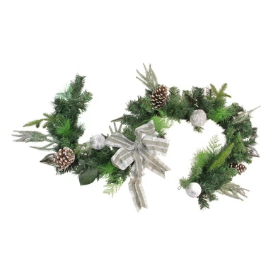 Silver 4-loop bow assorted sized silver ball and finial ornaments