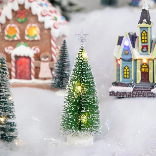 Set of 2 frosted bottle brush trees green