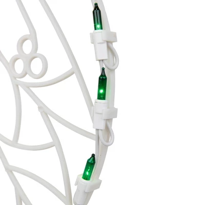 Add a pop of color to your windows with this red and green holiday wreath window silhouette. It is the perfect way to brighten up your decor with very little work. This window silhouette is an easy way to impress your friends and family inside and outside of your home.Product Features:Color: red and green bulbs / white wireNumber of bulbs: 50Bulb size: mini24″ white lead cordFor window, wall or mantel display Additional Product Features:Super bright bulbsUL listed for indoor or outdoor useIf one bulb burns out, the rest will stay litComes with replacement bulbs and spare fusesContains 1 plug with end connector which allows you to stack multiple lighted items together (not to exceed 210 watts)Suction cup includedWire gauge: 22120 volts, 60 hertz, .17 amps, 20.4 wattsDimensions: 16″H x 13″W x .25″DMaterial(s): plastic/wire/glass bulbs