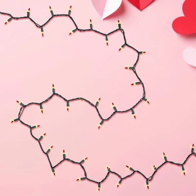 Brighten up your celebrations with this 100-count mini holiday light set featuring clear bulbs with charming red tips. Their versatile design makes them perfect not just for holiday, but also for adding a warm, festive touch to Valentine’s Day decor. Whether you’re decking the halls or setting a romantic mood, these lights will shine beautifully for any occasion.Product Features:Color: clear bulbs with red tips / green wireNumber of bulbs on string: 100Bulb size: miniBulb type: incandescentSpacing between each bulb: 2.5″Lighted length: 20.25’Total length: 21.5’12” lead cord3″ tail cordAdditional Product Features:UL certified and approved for indoor or outdoor useIf one bulb burns out, the rest will stay litLights are equipped with Lamp Lock feature, which makes them replaceable, interchangeable and keeps them from falling outComes with replacement bulbs, flasher bulbs and spare fusesContains end-to-end connectors which allow you to connect multiple sets together (not to exceed 210 watts)Wire gauge: 22120 volts, 60 hertz, .34 amps, 40.8 watts