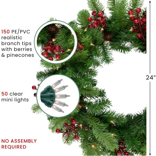 Dimensions: 24″ diameter (measured from outermost tip to outermost tip across the wreath)