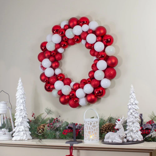 White and red matte, glitter and shiny shatterproof balls