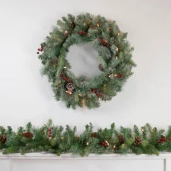 Northlight Pre-Lit Rockwood Pine Artificial Christmas Wreath, 36-Inch, Warm White LED Lights
