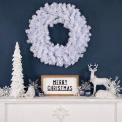 Northlight Pre-Lit Geneva White Spruce Artificial Christmas Wreath, 24-Inch, Blue Lights